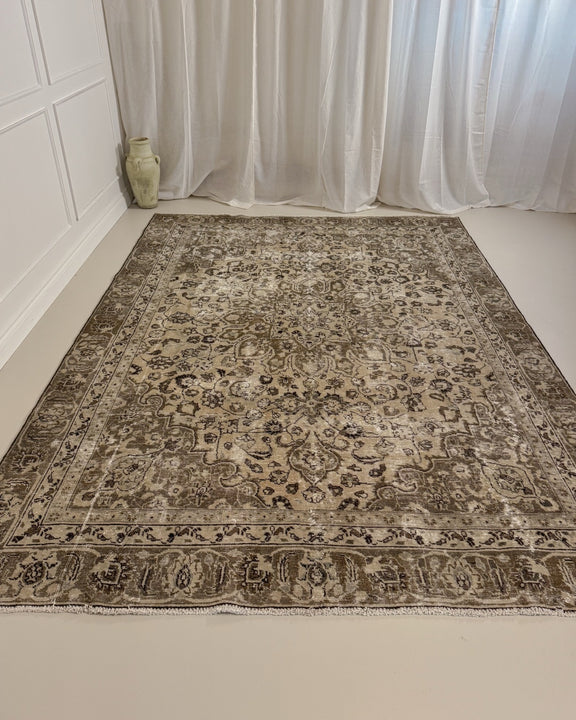 This one-of-a-kind vintage Turkish rug is a stunning example of timeless craftsmanship. Hand-knotted decades ago by skilled artisans, it features rich geometric motifs and a beautifully aged palette that speaks to its history and character. Turkish rugs use a symmetrical (Turkish) knot, leading to more geometric, sometimes bolder patterns. Woven from wool on cotton, its soft texture and authentic patina bring warmth, soul, and an unmistakable sense of heritage to any space. It’s more than a rug—it’s a piece of history that will elevate your home for years to come.