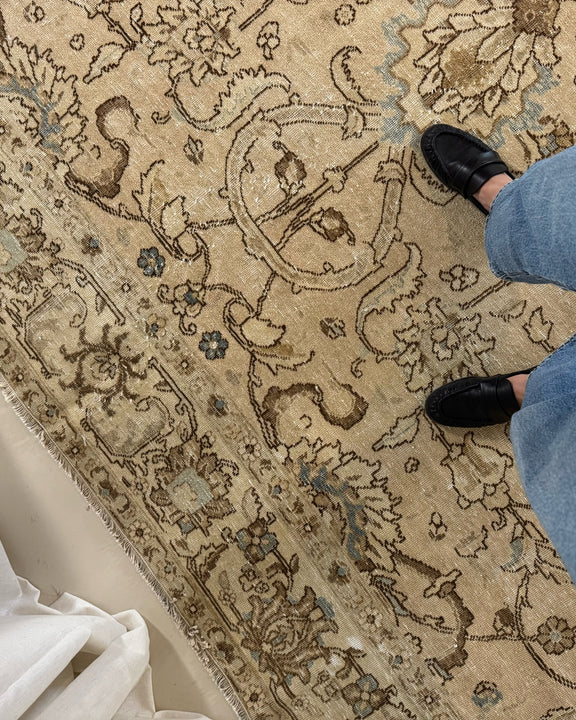 This one-of-a-kind vintage Turkish rug is a stunning example of timeless craftsmanship. Hand-knotted decades ago by skilled artisans, it features rich geometric motifs and a beautifully aged palette that speaks to its history and character. Turkish rugs use a symmetrical (Turkish) knot, leading to more geometric, sometimes bolder patterns. Woven from wool on cotton, its soft texture and authentic patina bring warmth, soul, and an unmistakable sense of heritage to any space. It’s more than a rug—it’s a piece of history that will elevate your home for years to come.