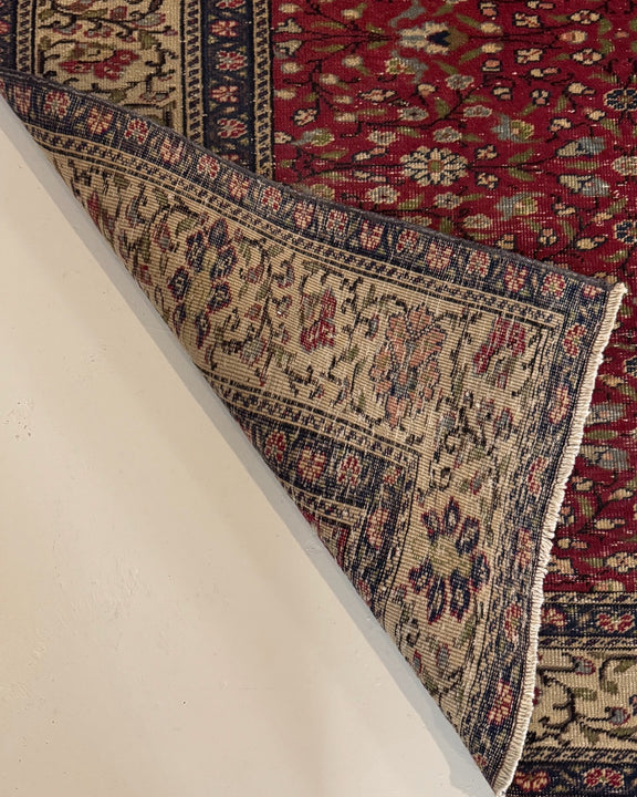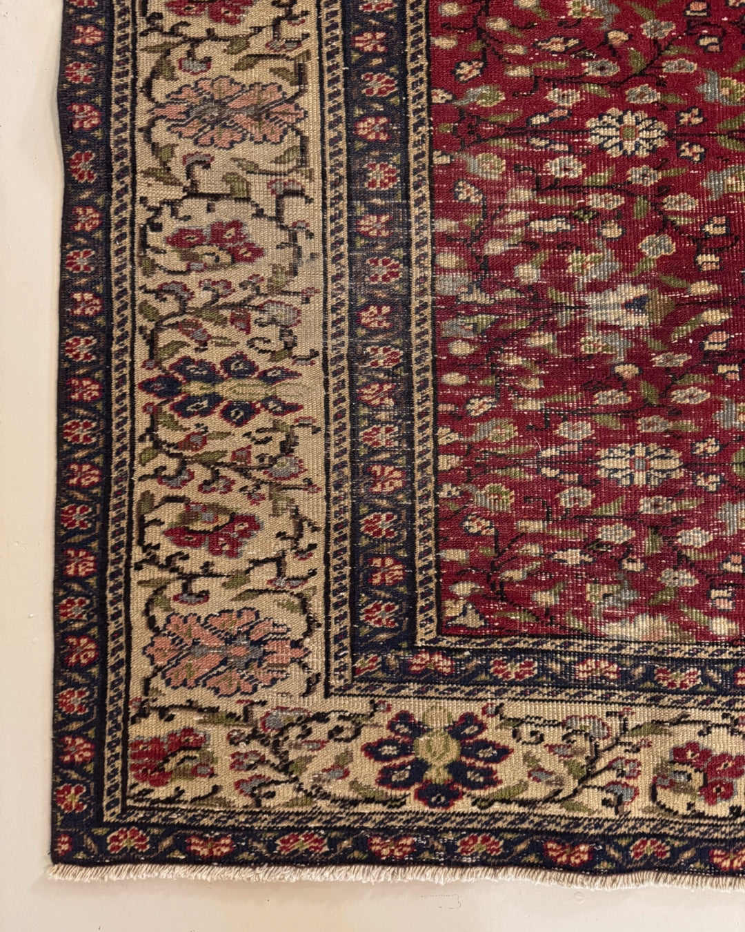 This one-of-a-kind vintage Turkish rug is a stunning example of timeless craftsmanship. Hand-knotted decades ago by skilled artisans, it features rich geometric motifs and a beautifully aged palette that speaks to its history and character. Turkish rugs use a symmetrical (Turkish) knot, leading to more geometric, sometimes bolder patterns. Woven from wool on cotton, its soft texture and authentic patina bring warmth, soul, and an unmistakable sense of heritage to any space. It’s more than a rug—it’s a piece of history that will elevate your home for years to come.