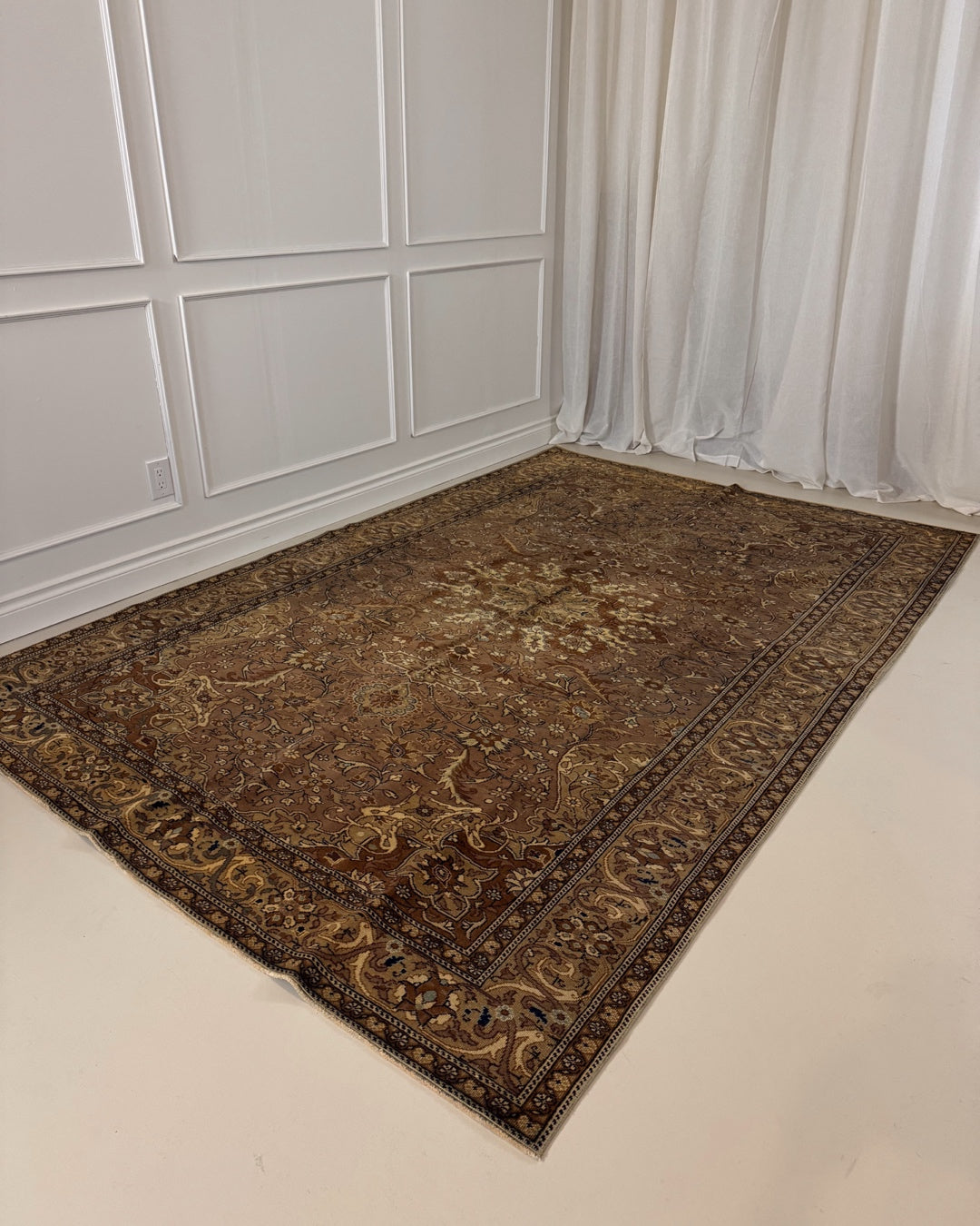This one-of-a-kind vintage Turkish rug is a stunning example of timeless craftsmanship. Hand-knotted decades ago by skilled artisans, it features rich geometric motifs and a beautifully aged palette that speaks to its history and character. Turkish rugs use a symmetrical (Turkish) knot, leading to more geometric, sometimes bolder patterns. Woven from wool on cotton, its soft texture and authentic patina bring warmth, soul, and an unmistakable sense of heritage to any space. It’s more than a rug—it’s a piece of history that will elevate your home for years to come.