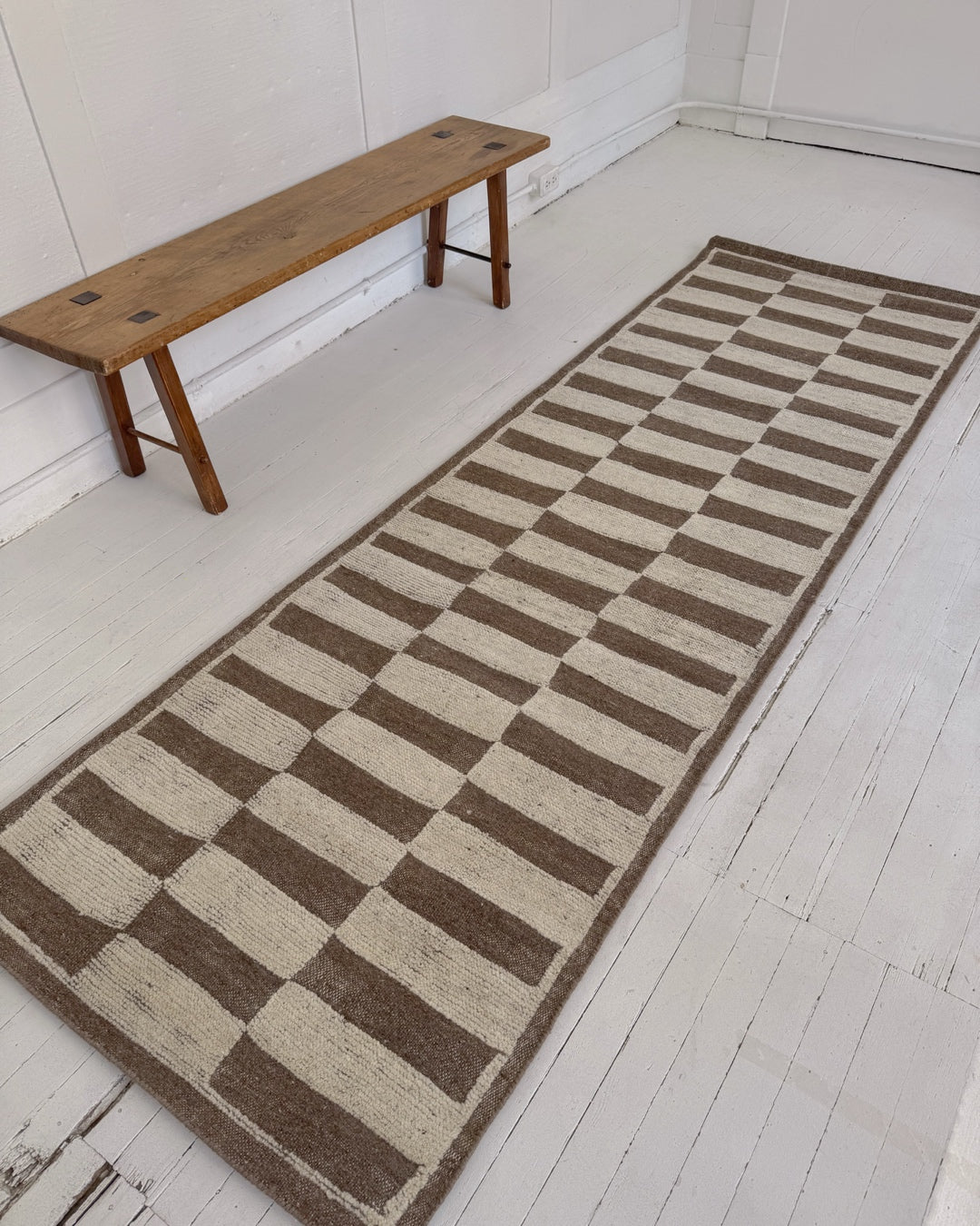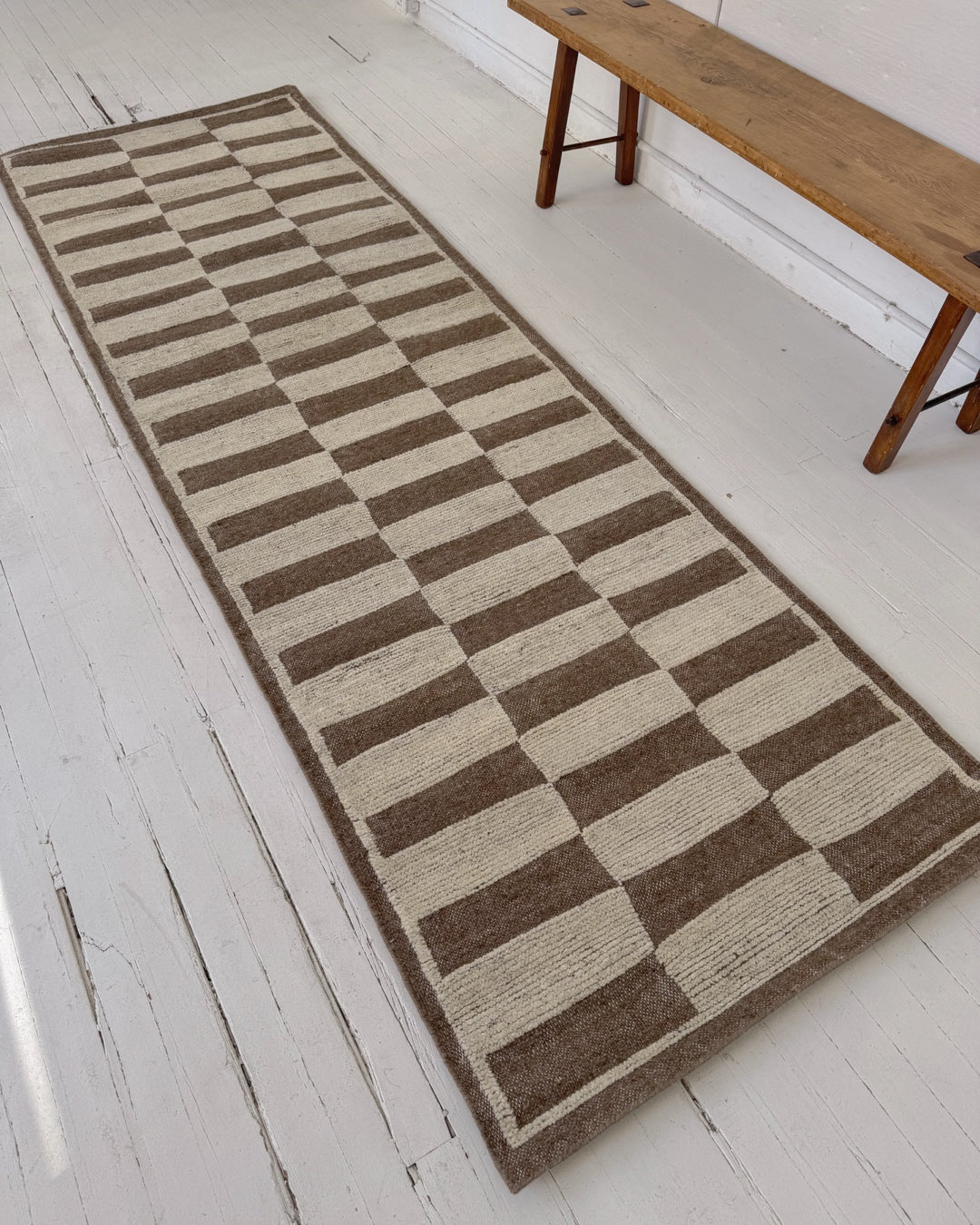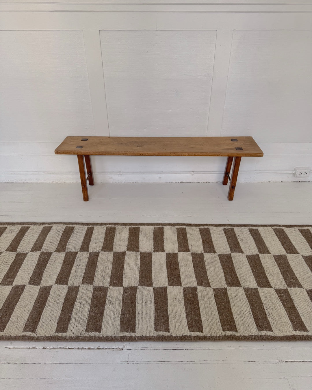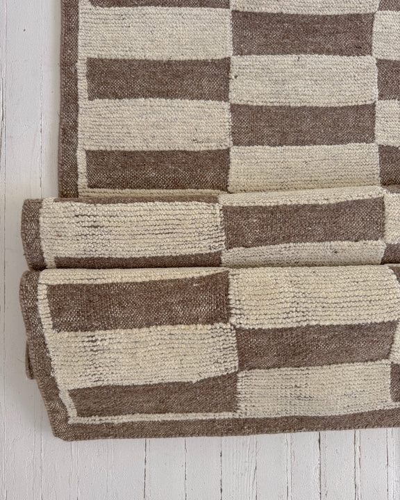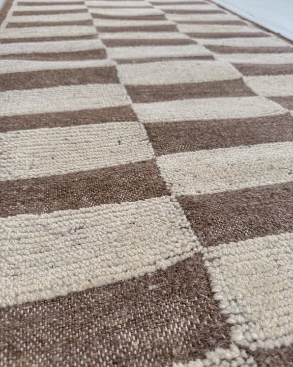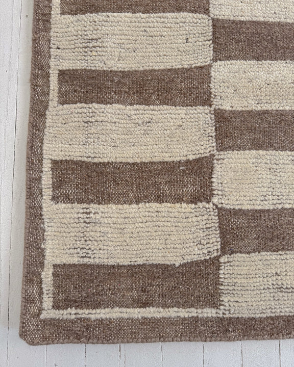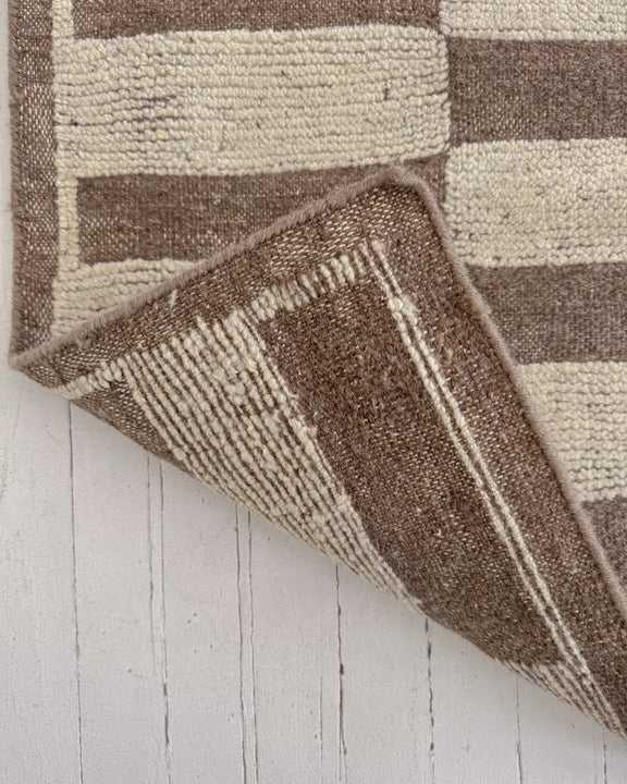 This newly handmade, Moroccan-inspired rug is a modern tribute to a timeless tradition. Crafted by skilled artisans using age-old weaving techniques, it blends the warmth of 100% natural wool with rich patterns and symbolism. Its calm, neutral tones and thoughtfully arranged geometric patterns create a sense of balance and serenity, while still echoing the bold designs passed down through generations—reimagined for today’s interiors. Its plush texture and versatile style makes this a unique piece you’ll treasure for years to come.